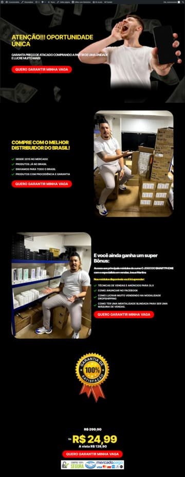 Uma página única, estratégica e focada em conversão. Ideal para campanhas, lançamentos ou captação de leads. Rápida, direta e pensada para gerar resultados.